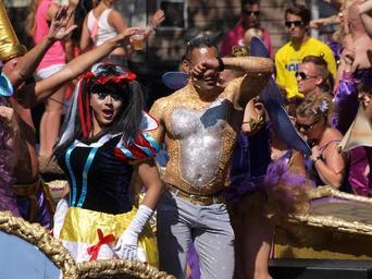Keywords: gay pride amsterdam persons colorful dressed netherlands holland homo lifestyle homosexuality demonstration