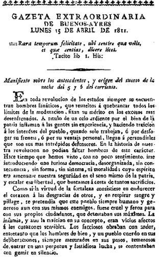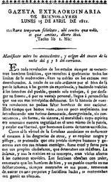 Keywords: Gazeta-18110415.jpg es Gazeta extraordinaria del 15 de abril de 1811 acerca de la revolución de los orilleros Diario Gazeta Junta Grande Gregorio Funes 1811-04-15 PD-AR-Anonymous PD-1923 History of Argentina from Independence to the Constitution of 1853 Documents of Argentina |