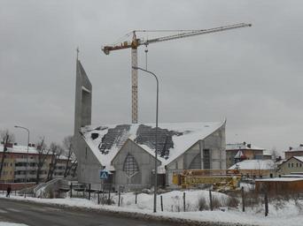 | Keywords: Gdańsk kościół świętej Teresy Benedykty od Krzyża (w budowie).JPG pl Gdańsk Kościół świętej Teresy Benedykty od Krzyża w budowie own Artur Andrzej 2013-01-19 Cc-zero Saint Edith Stein church in Gdańsk under construction Winter 2012-2013 in Gdańsk Construction cranes in Gdańsk |