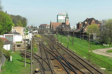 Keywords: gdansk poland railroad railway buildings city cities landscape architecture transportation grass summer spring