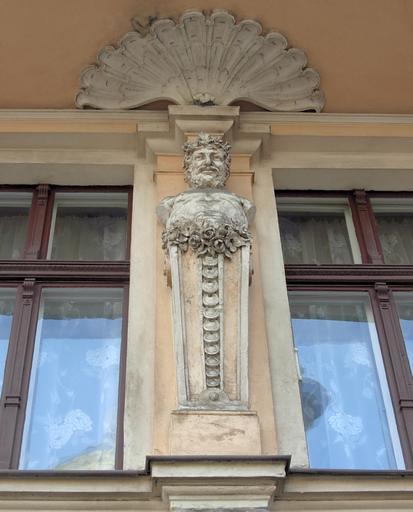 Keywords: Gdańska 63 Bydgoszcz c.jpg pl Kamienica ul Gdańska 63 w Bydgoszczy - detal own Pit1233 2010 Józef Święcicki tenement house in Bydgoszcz Caryatids in Bydgoszcz Cc-zero