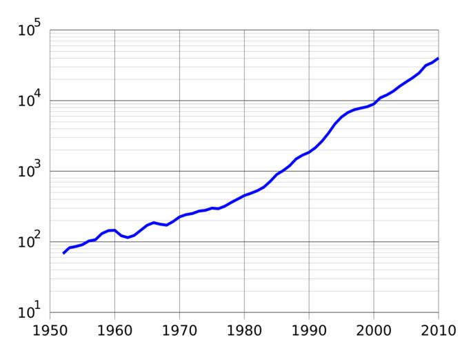 | Keywords: GDP of China in RMB-semilog.svg en GDP of China from 1952 to 2010 in billion Yuan Renminbi Data from http //www chinability com/GDP htm GDP growth in China 1952-2011 2014-12-13 own Delphi234 other versions File GDP of China in RMB svg linear File GDP of China in hundred million RMB-semilog svg in hundred million Yuan cc-zero Uploaded with UploadWizard Economy of the People's Republic of China GDP chart Diagrams labelled with numbers only | ||||