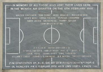 | Keywords: Gedenkstein Machester United Platte.jpg en Top tablet at the memorial stone in remembrance of the Munich air disaster 06 Februrary 1958 de Tafel auf dem Gedenkstein zum Flugzeugabsturz am 06 Februar 1958 own Flo Sorg 2009-06-01 48 7 33 02 N 11 40 36 55 E type landmark_region DE_heading WNW Munich air disaster memorial Plaques in Munich |
