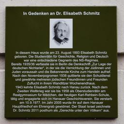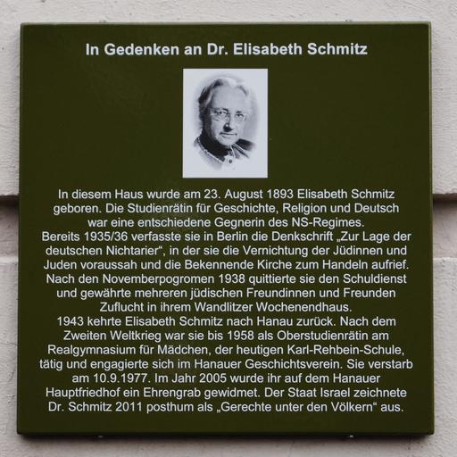Keywords: Gedenktafel Elisabeth Schmitz Hanau 01.jpg de Gedenktafel am Geburtshaus von Elisabeth Schmitz in Hanau Corniceliusstraße 16 Schautafel am Gebäude 2015-02-24 User Lumpeseggl Cc-zero Gedenktafel Elisabeth Schmitz Hanau 02 jpg 50 140963 8 920813 heading ESE FoP-Germany Elisabeth Schmitz Plaques in Hesse Monuments and memorials in Hanau |