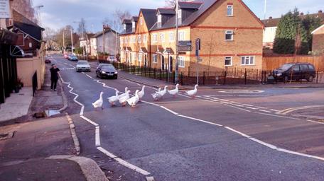 MAKE A MEME View Large Image geese road walk london bird nature animal wildlife outdoors feathers duck walking