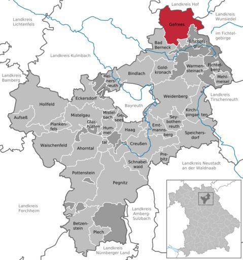 | Keywords: Gefrees in BT.svg DeLocMaps Gefrees Landkreis Bayreuth District of Bayreuth Bayreuth district L'arrondissement de Bayreuth Arrondissement de Bayreuth Bayern Bavière Bavaria Adobe Illustrator own based on File Municipalities_in_Bavaria svg by TUBS Bavaria_AM svg by TUBS 2010-04-20 Hagar66 based on work of TUBS Locator maps of municipalities in Landkreis Bayreuth Hagar66 GFDL cc-by-3 0 2 5 2 0 1 0 cc-by-sa-3 0 2 5 2 0 1 0 TUBS/Credits Maps and Coats of arms in Gefrees Locator maps of municipalities in the Landkreis Bayreuth |