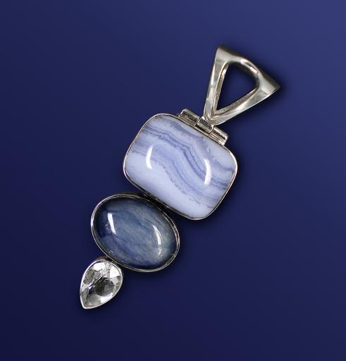 Keywords: gems jewellery trailers silver jewelry chalcedony bluish white shimmer silver rock crystal transparent ground violet blue light blue diagonal free