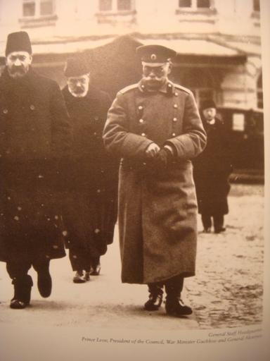 Keywords: General Alekseev.JPG en Chief of Staff of the General Headquarters Stavka General Alekseev prince Lvov President of the Councile and War Minister Guchkov at Stavka Spring 1917 ru ачальник штаба Ставки Ве ховного главнокомандующего гене ал Алексеев П едседатель В еменного п авительства князь Львов и военный минист Гучков Ставка Ве ховного главнокомандующего Весна 1917 A scanned copy of photoimage copied from book issued in 1920-s // скани ованная копия фотоизоб ажения из книги выпущенной 2 1920-х годах author 1917 PD-RusEmpire Russian GHQ in World War I Russian Revolution of 1917 Mikhail Alekseev Alexander Guchkov |