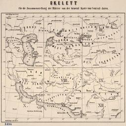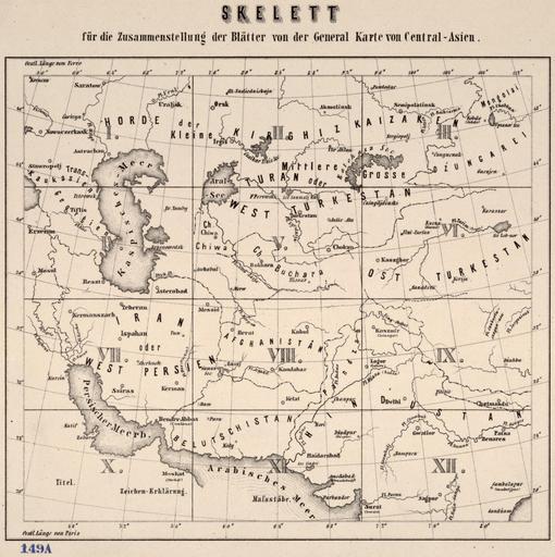 Keywords: General Map of Central Asia-Schematic View (1874).jpg Kurztitel General-Karte von Central-Asien; Vollständiger Titel General-Karte von Central-Asien bearbeitet nach den besten und neuesten Russischen und Englischen quellen <br />General-Karte von Central-Asien Schematischen Ansicht Maßstab 1 3 024 000; Maße 125 x 137 cm <br /> General Karte von Central Asien ist eine große detaillierte Karte im Jahre 1874 von der Militär Geographischen Institut Wien produziert Die Karte ist auf 12 getrennten Platten nummeriert I-XII; ein 13 Platte gibt einen berblick und eine nummerierte Anleitung wie die Teile zusammenpassen Die Karte deckt eine riesige Fläche im Nordwesten von der russischen Region nördlich des Kaspischen Meeres begrenzt ist; im Südwesten von heutigen Saudi-Arabien und Oman; nordöstlich von der westlichen Mongolei; und im Südosten von Gujarat Indien Der Titel Zeichenerklärung und Erklärung der Abkürzungen sind auf Tafel X in der unteren linken südwestlichen Ecke Sieben Schuppen in verschiedenen Längeneinheiten Englisch Italienisch Russisch Türkisch Persisch Chinesisch und metrischen vorgesehen sind an der Unterseite der Platte XII Die gezeigten Merkmale sind Städte und Gemeinden; nationalen und provinziellen Grenzen; Türme Burgen und Ruinen; bestehende und geplante Eisenbahnstrecken; Telegrafenleitungen; und Straßen Nach dem Titel wird die Karte mit den besten und neuesten russischen und englischen Quellen überarbeitet Russland und die British Empire waren Rivalen um Einfluss in Zentralasien in was später als The Great Game und sie spezielles Know-how hatten über die Region gewonnenen wissenschaftlichen und militärischen Expeditionen und Handelskontakte Short Title General Map of Central Asia; Full Title General map of Central Asia edited based on the best and the newest Russian and English sources <br />General map of Central Asia Schematic View Scale 1 3 024 000; Dimension 125 × 137 cm <br /> General map of Central Asia is a large detailed map produced in 1874 by the Military Geographic Institute of Vienna The map is on 12 separate plates numbered I XII; a 13th plate gives an overview and a numbered guide to how the parts fit together The map covers a huge expanse bounded to the northwest by the region of Russia north of the Caspian Sea; to the southwest by present-day Saudi Arabia and Oman; to the northeast by western Mongolia; and to the southeast by Gujarat India The title key to symbols and explanation of abbreviations are on Plate X in the lower left-hand southwestern corner Seven scales in different distance units English Italian Russian Turkish Persian Chinese and metric are provided at the bottom of Plate XII The features shown include cities and towns; national and provincial borders; towers fortresses and ruins; existing and projected railroads; telegraph lines; and roads According to the title the map is revised with the best and newest Russian and English sources Russia and the British Empire were rivals for influence in Central Asia in what came to be called the Great Game and they had special expertise about the region gained from scientific and military expeditions and commercial contacts К аткое название Общая ка та Цент альной Азии; Полное название Общая ка та Цент альной Азии от едакти ованная с учетом лучших и новейших оссийских и английских источников <br />Общая ка та Цент альной Азии Схематический вид асштаб 1 3 024 000; Разме ы 125 × 137 см <br /> Общая ка та Цент альной Азии п едставляет собой большую под обную ка ту выпущенную в 1874 г Военным геог афическим институтом в Вене Ка та занимает 12 отдельных листов п онуме ованных от I до XII; на 13-м листе п едоставлена общая инфо мация и уководство с нуме ацией для соединения частей Ка та охватывает обши ный егион на севе о-западе он г аничит с те ито ией России к севе у от Каспийского мо я; на юго-западе с те ито ией сов еменной Саудовской А авии и Омана на севе о-востоке с Западной онголией а на юго-востоке с п овинцией Гуджа ат Индия азвание ключ к символам и пояснения к сок ащениям п иводятся на Листе X в левом нижнем углу юго-запад асштаб указан в семи азличных единицах изме ения английских итальянских усских ту ецких пе сидских китайских и мет ических в нижней части Листа XII В число объектов на ка те входят большие и малые го ода; г аницы госуда ств и п овинций; башни к епости и уины; существующие и п оекти уемые железные до оги; телег афные линии и до оги Из названия следует что ка та была пе есмот ена с учетом лучших и новейших оссийских и английских источников Российская и Б итанская импе ии сопе ничали за установление влияния в Цент альной Азии вели так называемую Большую иг у Они очень хо ошо знали егион благода я данным полученным в ходе научных и военных экспед