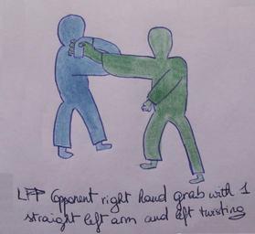 | Keywords: Generic fighting style PCHoldTechnique 2.JPG en A schematic showing a PC hold fighting technique The technique is generic meaning that it is used in a variety of fighting styles The schematic was based on an image in the book Aikido and the dynamic sphere by Adele Westbrook Oscar Ratti own KVDP 2009-07-25 Martial arts technique |
