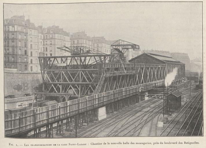 | Keywords: Genie civil 1914 A34 T65 N9 P169 messageries saint lazare.jpg fr Messageries du pont de l'Europe travaux de construction de la nouvelle halle 1914 Le Génie civil revue générale des industries françaises et étrangères 27 juin 1914 34e année t 65 no 9 Le Génie civil other versions PD-old-70-1923 Parking du Pont de l'Europe Messageries de la gare Saint-Lazare | ||||