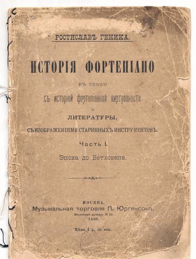 | Keywords: Genika pianist.jpg ru О игинал книги Ростислава Владими овича Геники пода енный авто у публикации доче ью д уга и коллеги Р В Геники композито а Се гея Ивановича Дочевского-Александ ович известного конце ти ующего пианиста ученика и д уга Рубинштейна и П Чайковского музыкального к итика авто а музыкально-исто ических т удов п еподавателя Ха ьковского музыкального училища ИР О на базе кото ого в 1917 году по инициативе Ильи Ильича Слатина была создана Ха ьковская консе вато ия own Титульный лист печатного издания 1896 год о игинал обложки мягкая книги Р Геники Исто ия фо тепиано из моего личного а хива по исто ии музыки Ха ькова PD-old Documents of Kharkiv Piano music Rostislav Genika Title pages from Russia Published in Moscow |
