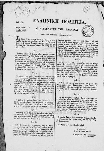 Keywords: Genikon Frontistirion Kapodistria 1828.jpg en Order of the Governor of Greece Capo d'Istria for the duties of Genikon Frontistirion el Γενικόν Φροντιστήριον Διαταγή του Κυβερνήτη της Ελλάδος Ιωάννη Κα οδίστρια για τα καθήκοντα του Γενικού Φροντιστηρίου http //arxeiomnimon gak gr/browse/resource html tab tab02 id 482745 start 40 Φάκελος 290 - ΣΥΛΛΟΓΗ ΒΛΑΧΟΓΙΑ Η ΙΔΙΩΤΙΚΕΣ ΣΥΛΛΟΓΕΣ ΚΑΤΑΛΟΓΟΣ Α' / ΑΡΧΕΙΟ ΑΡΧΙΣΤΡΑΤΗΓΟΥ ΤΣΟΥΡΤΣ ΥΨΗΛΑ ΤΟΥ 1828 1829 Greek Government 1828 1828-03-31 From the General Archives of the Greek State Α ό τα Γενικά Αρχεία του Κράτους PD-old-100 Institution General State Archives Greece Government of Greece Ioannis Kapodistrias General State Archives Greece |