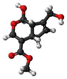 Keywords: Genipin 3D ball.png Ball-and-stick model of the genipin molecule Colour code 505050 Carbon C black<br> F0F0F0 Hydrogen H white<br> F51E1E Oxygen O red<br> 2011-07-17 own DS Visualizer Jynto talk Space-filling version cc-zero Images by Jynto Ball-and-stick models Iridoids Lactols Methyl esters 3D-sticks models |