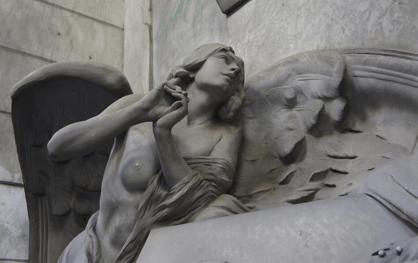 Keywords: genoa staglieno cemetery grave sculpture naked breast wing angel old cemetery tombstone graves atmosphere silent mood rest gothic death
