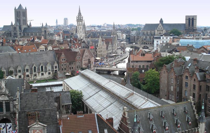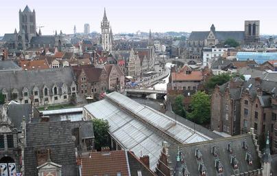 | Keywords: Gent vanuit Meestentoren2.JPG  fr Vue du vieux Gand Belgique prise du haut du donjon du Château des Comtes Gravensteen De gauche à droite en haut l ™Ã©glise Saint-Nicolas; tout au loin à l'horizon l ™Ã©glise Saint-Pierre et la bibliothèque universitaire; la tour à horloge de l ™hôtel de poste dont fait partie aussi l ™aile néogothique à droite de la tour; entre celle-ci et la bibliothèque universitaire on distingue le toit arrondi de l ™Institut des Sciences; l ™Ã©glise Saint-Michel et son clocher carré et trapu Au deuxième plan le Vleeshuis; le Graslei et son alignement de façades dont celle du Spijker derrière les parasols blancs La grande toiture de zinc à l ™avant-plan appartient au Vismijn On remarque la rivière la Lys serpentant à travers la vieille ville Le bâtiment situé sur la Lys derrière le chevet de l ™Ã©glise Saint-Michel et que l ™on voit de biais est le couvent des dominicains le Pand nl Vergezicht op Gentse 'Kuip' vanop Meestentoren van het Gravensteen Achtergrond van links naar rechts Sint-Nicolaaskerk; in de verte aan horizon toren Sint-Pieterskerk en zog Boekentoren universiteitsbibliotheek ; smalle kloktoren van het voormalige centraal postgebouw; tussen kloktoren en boekentoren boogvormig dak van het Instituut der Wetenschappen; helemaal rechts schip en bonkige toren Sint-Michielskerk Midden links Vleeshuis; meer naar rechts Graslei met oude gevels waaronder Spijker achter witte parasols Groot zinken dak onderaan rechts is van de Oude Vismijn Rivier de Leie slingert zich door de oude stad Pand der Predikheren schuin zichtbaar achter koor Sint-Michielskerk self-photographed Torsade de Pointes 02-08-2007 Views from Gravensteen Ghent  |