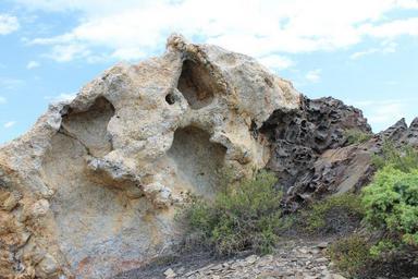 Keywords: 096-Parc Cap de Creus.jpg Geological formation Spain northeastern coast Parc Cap de Creus Felsen aus Quarzit hell und tafoniertem metamorphem Schiefer own 2014-06-17 Grey Geezer public domain Cc-zero Cap de Creus