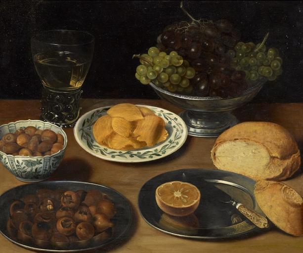 Keywords: Georg Flegel Frühstück mit Trauben Nüssen Kastanien und Brot.jpg Artwork creator Georg Flegel by 1638 oil oak panel cm 38 7 48 6 object history credit line accession number http //www van-ham com/ Van Ham Kunstauktionen PD-old-100 PD-old-100 17th-century still life paintings by Georg Flegel Breakfast in art Paintings of grapes Nuts in art Chestnuts in art Still life paintings of bread Still life paintings of tableware 1630s still life paintings 17th-century still life paintings of food 17th-century paintings location missing Images from Van Ham Kunstauktionen |