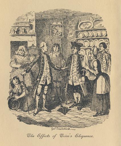 Keywords: George Cruikshank - Tristram Shandy, Plate I. The Effects of Trim's Eloquence original scan.png Original unmodified and unrotated scan From George Cruikshank's illustrations to Laurence Sterne's Tristram Shandy Plate I The Effects of Trim's Eloquence The Life and Opinions of Tristram Shandy Gentleman and A Sentimental Journey Through France and Italy by Laurence Sterne With Illustrations by George Cruikshank London Hutchinson Co Paternoster Row 1906 This version published 1906 George Cruikshank 1792 “1878 PD-Old-100 Part of a series of illustrations of Tristram Shandy <gallery widths 200px heights 250px> File George Cruikshank - Tristram Shandy Plate I The Effects of Trim's Eloquence jpg Plate I The Effects of Trim's Eloquence<br/> PNG Scan File George Cruikshank - Tristram Shandy Plate II Obadiah leading in Dr Slop jpg Plate II Obadiah leading in Dr Slop<br/> PNG Scan File George Cruikshank - Tristram Shandy Plate III The Jack-boots transformed into Mortars jpg Plate III The Jack-boots transformed into Mortars<br/> PNG Scan File George Cruikshank - Tristram Shandy Plate IV The long-nosed Stranger of Strasburg jpg Plate IV The long-nosed Stranger of Strasburg<br/> PNG Scan File George Cruikshank - Tristram Shandy Plate V My Uncle Toby on his Hobby-horse jpg Plate V My Uncle Toby on his Hobby-horse<br /> PNG Scan File George Cruikshank - Tristram Shandy Plate VI Trim's relation of Tristram's misfortune jpg Plate VI Trim's relation of Tristram's misfortune<br/> PNG Scan File George Cruikshank - Tristram Shandy Plate VII The Quarrel of Slop and Susannah jpg Plate VII The Quarrel of Slop and Susannah<br/> PNG Scan File George Cruikshank - Tristram Shandy Plate VIII The Smoking Batteries jpg Plate VIII The Smoking Batteries<br/> PNG Scan </gallery> Original Uncategorized 2014 December 25 |