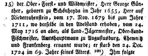 Keywords: George Günther aus Schönheide bei Simon Nachrichten von Zschopau 1821.jpg Ernst Friedrich Wilhelm Simon Kurze historisch-geographisch-topographische Nachrichten von den vornehmsten Denckwürdigkeiten der Berg-Stadt Zschopau Dresden 1821 S 81 https //books google de/books id OoAAAAAAcAAJ pg PA81 Digitalisat berichtet über den in Schönheide geborenen George Günther Scan of a book of 1821 1821 author gemeinfrei PD-old-70-1923 George Günther |