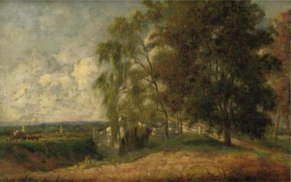 | Keywords: George Loring Brown - Old bridge over the old Lowell Canal at Medford, Massachusetts.jpg Artwork Creator George Loring Brown Old bridge over the old Lowell Canal at Medford Massachusetts 1863 oil canvas cm 26 5 39 object history Provenance Private Collection New York credit line signed Geo L Brown and dated 1863 twice l l and l r ; signed Geo L Brown titled Old Bridge Over the Old Lowell Canal at Medford Mass /from nature and dated 1863 on the reverse accession number http //www arcadja com/auctions/en/brown_george_loring/artist/4027/ Sotheby's via ARCADJA auction results PD-Art-100 George Loring Brown Landscape paintings of the United States Paintings of Massachusetts 1863 paintings Images from Sotheby's 1860s landscape paintings |
