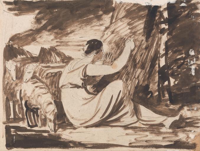 | Keywords: George Romney - Shepherdess Cutting an Inscription on a Tree - Google Art Project.jpg Not on View Brown ink with brown wash over graphite on medium moderately textured cream laid paper clouds sheep woman shepherdess tree cap dress figure study genre subject inscription special url_id dgHy7jgGlJdgJg PD-old-100-1923 1802 Drawings by George Romney Google Art Project works by George Romney Drawings of sitting females | ||||