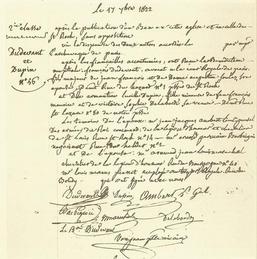 Keywords: George Sand (1804-1876) mariage 1822.jpg Mariage religieux à Paris le 17 septembre 1822 d'Aurore Dupin future George Sand 1804-1876 avec le baron Casimir François Dudevant 1795 “1871 à Saint-Louis d'Antin Acte conservé aux Archives de Paris <br />http //www paris fr/politiques/paris-d-hier-a-aujourd-hui/archives-de-paris/p149 site des Archives de Paris <br />Ouvrage Roger Pierrot Jacques Lethève Marie-Laure Prévost Michel Brunet et la Bibliothèque nationale de France Préface de Georges Le Rider « George Sand visages du romantisme » Paris Bibliothèque nationale de France Ž 20 janvier 1977 208 pages Image 60 du catalogue de l'exposition page 14 <br />http //gallica bnf fr/ark /12148/bpt6k65340311/f48 image George Sand visages du romantisme Registre paroissial de l'Archevêché année 1822 ville de Paris - Archives du département et de la ville de Paris 1822-09-17 Domaine public PD-old-100 George Sand Marriage certificates |