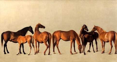 Keywords: George Stubbs Mares and Foals 1762.jpg en Mares and Foals without a Background Oil on canvas 39/75 in 99/190 5 cm Private Collection de Stuten und Fohlen ohne Hintergrund Öl auf Leinwand 99 x 190 5 cm Privatbesitz ru Кобылы и же ебята без фона Холст масло 99 х 190 5 см Частная коллекция http //www pinakothek de/lightbox nid 10655 here / здесь Creator George Stubbs Private collection object history exhibition history credit line accession number 1762 PD-old-100-1923 Romantic paintings of horses Foals in art Paintings of horses by George Stubbs 1762 paintings