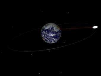 Keywords: Geosynchronous orbit.gif Geosynchronous orbit animation This shows a satellite in a geosynchronous actually geostationary orbit about the Earth When orbiting at a certain height a satellite's period of rotation is the same as the Earth's exactly one day If the satellite is orbiting above the equater as here it appears from the Earth not to move hovering at the same point in the sky Communication satellites have geosynchronous orbits so the satellite dishes which communicate with them do not have to move but can be pointed permanently at the point in the sky where they appear own Talifero 2010 01 09 19 05 13 Celestial mechanics Orbits Animated gifs of orbits Animations on black background |