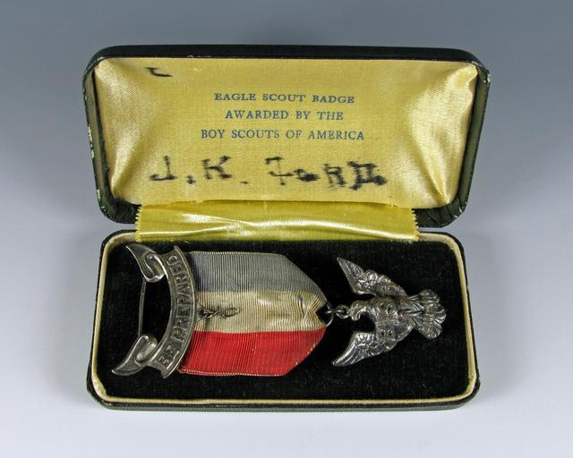 | Keywords: Gerald Ford Eagle Scout medal.jpg en Eagle Scout award medal earned by Gerald R Ford in 1927 Features a metal eagle hanging from a red white and blue ribbon J R Ford written in black ink on back Complete with presentation box Gift of Gerald Ford Note More on Gerald R Ford ™s rank advancement in Boys Scouts of America at http //www lincoln-highway-museum org/GRF/GRF-01-Index html Lincoln Highway Museum 3 5 x 1 5 Institution Gerald R Ford Presidential Museum http //www fordlibrarymuseum gov/museum/ArtifactCollectionSamples/Catagories/LifeCareer/EagleScoutMedal html Eagle Scout medal accession number 1981 128 5 credit line Courtesy of the Gerald R Ford Presidential Museum Donation Date 1981 Institution Institution Gerald R Ford Presidential Museum Gerald R Ford Presidential Library and Museum-cooperation PD-USGov Uploaded with UploadWizard Miscellaneous objects in the collection of the Gerald R Ford Presidential Museum Boy Scouts of America Badges of the United States |