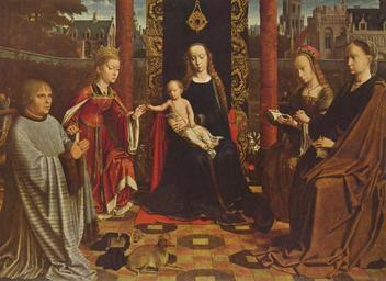 Keywords: Gerard David 003.jpg File Gerard David - The Virgin and Child with Saints and Donor - Google Art Project jpg The Virgin and Child with Saints and Donor oil wood cm 104 144 Institution National Gallery London Yorck 1505-1510 creator Gerard David http //mail wikipedia org/pipermail/wikide-l/2005-April/012195 html Other versions PD-old-100 PD-Art-YorckProject Paintings of Madonna and Child by Gerard David Early Netherlandish paintings in the National Gallery Mystic marriage of Saint Catherine of Alexandria Paintings of Madonna and Child in the United Kingdom 16th-century greyhounds in art Saints with greyhounds in art 16th-century oil on panel paintings in the United States 16th-century religious paintings in the United Kingdom 1500s paintings in the United Kingdom 16th-century donor portraits with Madonna Virgin Mary with dog 1510s religious paintings |