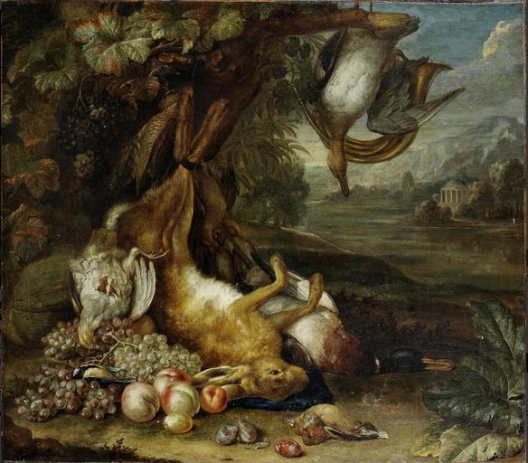 View Original: | Gerard_Rijsbrack_-_A_dead_hare_with_fruit_and_dead_birds_at_the_foot_of_a_tree.jpg (905x793) | |||