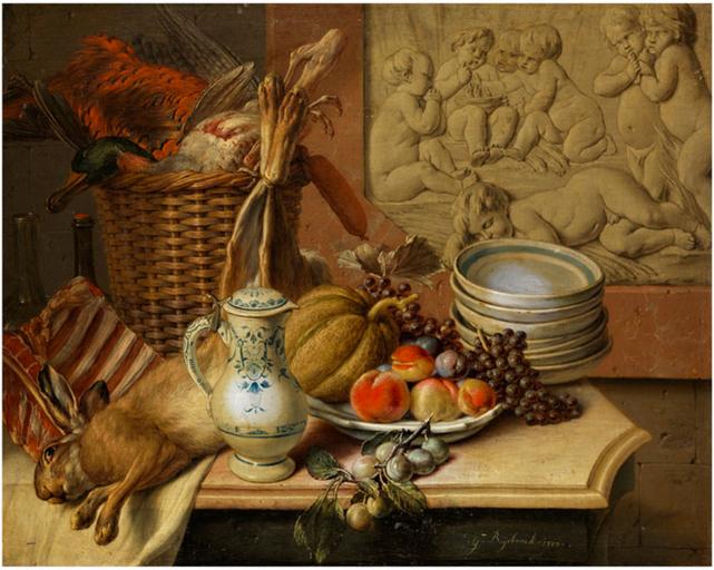 | Keywords: Gerard Rysbrack - Still life with game.jpg Artwork creator Gerard Rijsbrack en Still life with game 1757 https //www hampel-auctions com/archive-catalogue-detail html la en a 94 s 351 id 514734 q 2165 kid 2165 qa la en Oil canvas cm 78 99 At Hampel in Munich on 19 September 2013 as lot 539 One of a pair Signed at the bottom right and left respectively and dated 1757 Other versions PD-old-100 Gerard Rijsbrack 1 18th-century still life paintings of dead game Still-life paintings of food 18th-century still-life paintings of fruits Paintings of grapes Oil still-life paintings with peaches Pumpkins in paintings 1 18th-century paintings of putti |