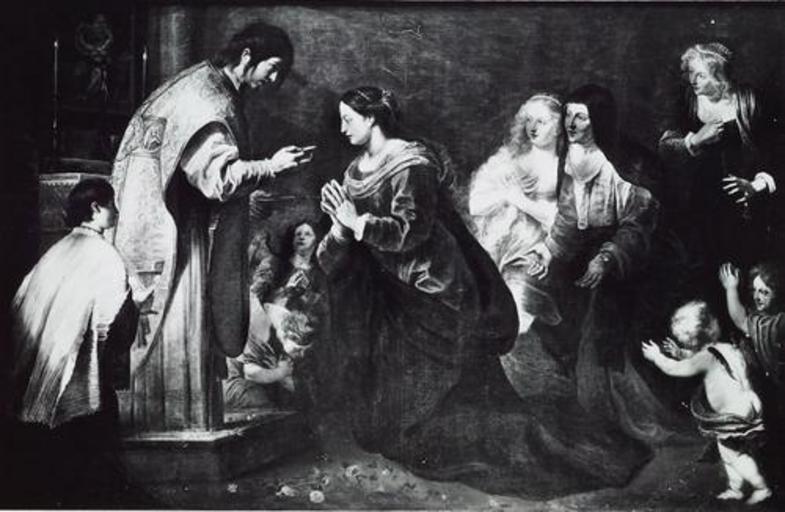 Keywords: Gerard Seghers 004.jpg Der Evangelist Johannes spendet der Jungfrau Maria die letzte Kommunion oil on canvas cm 157 240 langswitch frame Rahmenmaße 176 x 260 x 7 5 cm Wien Institution Kunsthistorisches Museum langswitch red star roter Stern GG_2624 object history Antwerpen ehem Jesuitenkirche St Ignatius Marienkapelle; Im Zuge der zeitweiligen Aufhebung des Jesuitenordens 1776 unter der Regierung Maria Theresias nach Wien 1781 in der Galerie http //bilddatenbank khm at/viewArtefact id 1773 1630/1634 creator Gerard Seghers PD-old-100 Other versions Paintings by Gerard Seghers in the Kunsthistorisches Museum