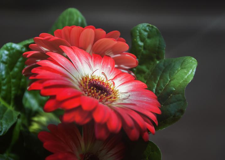 Keywords: gerbera close yellow red nature green blossom bloom flower weis plant leaf garden