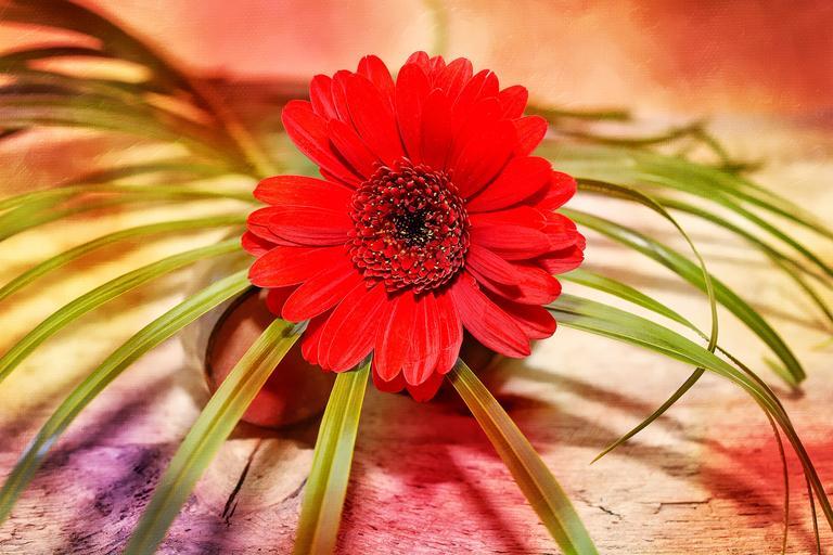 Keywords: gerbera flower schnittblume plant grass decoration blossom bloom red close painting digital painting