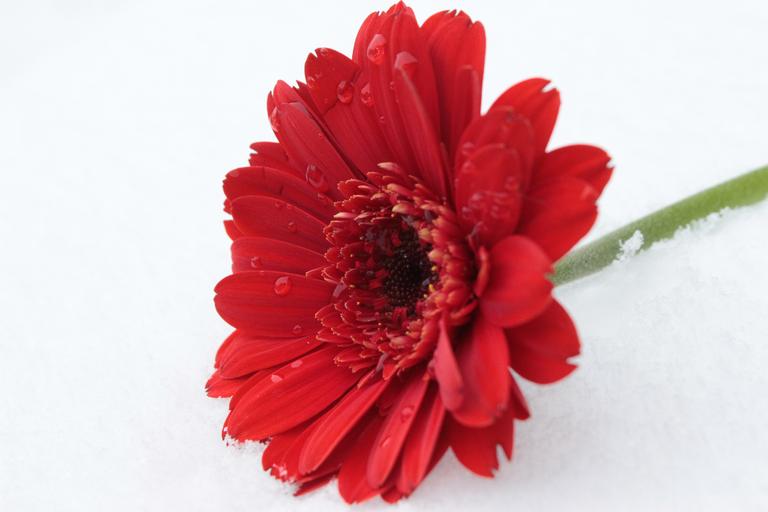 Keywords: gerbera red flower blossom bloom schnittblume drop of water bloom