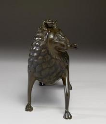 Keywords: German - Aquamanile in the Form of a Lion - Walters 5325.jpg Aquamanilia or water pitchers present an interesting case of intercultural exchange across great distances This type of vessel is a small closed water pourer often shaped as an animal or mythological creature The form developed in the ancient Near East and many of the animals shown whether real or mythical also derive from Near Eastern prototypes lions were particularly favored This unusual example bears a Hebrew inscription on one side that reads Blessed be the King of the Universe who has instructed us to wash our hands indicating that it served a ceremonial function either in a Jewish home or synagogue Whether this inscription is original to this piece or added later it attests to the diverse cultural communities served by the same type of object late 13th or early 14th century Late Medieval brass H 9 1/8 x L 10 5/8 x D 5 1/16 in 23 2 x 27 x 12 9 cm accession number 53 25 19407 Stein Sale Paris 1899 no 139 Henri Daguerre Paris by purchase Henry Walters 1927 by purchase Walters Art Museum Henry Walters Acquired by Henry Walters 1927 Translation Blessed be God King of the Universe who blessed us and instructed us to wash our hands Baruch ata adonai alokhenu meleh Ha-olam asher Ridshanu bemitsvotsar vetsivanu al netilas yadayim Highlights from the Collection The Walters Art Gallery Baltimore 1998-2001 place of origin Flanders Belgium Walters Art Museum license Medieval metalwork in the Walters Art Museum German art in the Walters Art Museum Media contributed by the Walters Art Museum needs category review Media contributed by the Walters Art Museum needs artist review |
