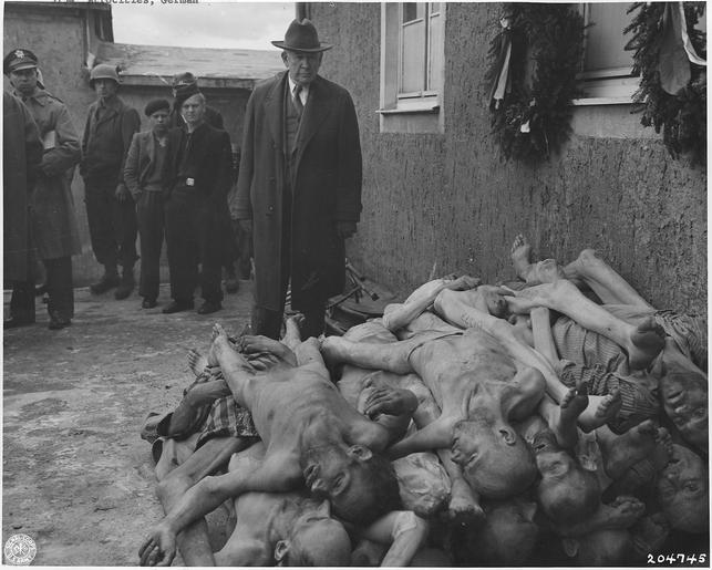 | Keywords: German atrocities. Germany, Poland & Czechoslovakia - NARA - 292594.tif Scope and content Senator Alben W Barkley of Kentucky a member of a congressional committee investigating Nazi atrocities views the evidence at first hand at Buchenwald concentration camp Weimar Germany 4/24/45 General notes 292594 Local identifier Department of Defense Department of the Army Fort Leavenworth Kansas 09/18/1947 - NARA's Central Plains Region Kansas City NREA 400 West Pershing Road Kansas City MO 64108 1945 Record group Record Group 338 Records of U S Army Operational Tactical and Support Organizations World War II and Thereafter 1917 - 1999 Record group ARC 651 Ft Leavenworth Signal Corps Photograph Collection Equipment File compiled 1939 - 1965 Series ARC 292562 File unit File unit ARC Variant control numbers NAIL Control Number NRE-338-FTL EF -3134 2 yes Other versions <gallery> File German_atrocities _Germany _Poland_ amp _Czechoslovakia_-_NARA_-_292594 tif tif File German_atrocities _Germany _Poland_ amp _Czechoslovakia_-_NARA_-_292594 jpg jpg </gallery> NARA-cooperation PD-USGov Alben Barkley Corpses in Buchenwald concentration camp 24 April NARA TIF images with categorized JPGs April 1945 in Germany |