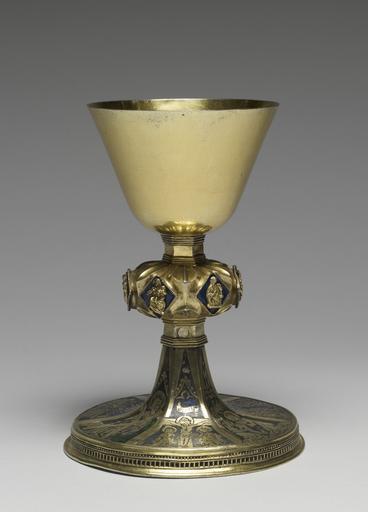 | Keywords: German - Chalice with Saints and Scenes from the Life of Christ - Walters 44116.jpg The stem and cup of this chalice were probably made in Germany ca 1500 and are later than the base which has been attributed to Bohemia or Austria and dated ca 1400 The enamels contain an image of the apostle Andrew holding the X-shaped cross on which he died to whom the church where the chalice was used was probably dedicated Around it are the Annunciation Crucifixion Resurrection and Ascension with Christ disappearing in the clouds The last scene shows St Martin 316-97 bishop of Tours France celebrating mass as divine flames descend upon an altar with a chalice upon it late Other date century 14 Medieval silver-gilt and translucent enamels cm 18 5 13 accession number 44 116 15369 Raoul Heilbronner Paris date of acquisition unknown by purchase Henry Walters city Baltimore Walters Art Museum Henry Walters Acquired by Henry Walters 1913 The International Style The Arts in Europe Around 1400 The Walters Art Gallery Baltimore 1962 Illuminated Manuscripts Masterpieces in Miniature The Walters Art Gallery Baltimore 1984-1985 Realms of Faith Medieval and Byzantine Art from the Walters Art Museum Museum of Biblical Art New York; Colby College Museum of Art Waterville; Joslyn Art Museum Omaha 2008-2009 place of origin Bohemia Walters Art Museum license Medieval metalwork in the Walters Art Museum Chalices German art in the Walters Art Museum Media contributed by the Walters Art Museum needs category review |