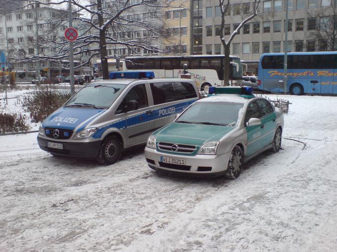 Keywords: German Police Vehicles In Liveries.jpg Vehicles of the Police of Hesse in the new blue and the old green livery seen in Frankfurt Germany Note that the green-silver livery is itself an update - earlier up to about the 1990s vehicles used green-white However the white colour apparently significantly lowered the resale price of the cars once the police sold them off Not sure if that's really true though self-photographed 2009-12 Uploader Photos taken by Ingolfson Police automobiles of Hesse Paulsplatz Frankfurt Mercedes-Benz Vito W639 in police service Opel police automobiles Opel Vectra C Winter 2009-2010 in Frankfurt am Main Berliner Straße Frankfurt am Main 2009 in Frankfurt am Main 2009-12-xx |