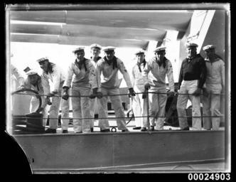 | Keywords: koln german cruiser germancruiser german naval visit navalvisit navy naval sydney harbour sydneyharbour samuel j hood collection samueljhoodcollection sydney cove sydneycove circular quay circularquay west circular quay westcircularquay crowds german navy germannavy sailors blackandwhite monochrome photo border black and white This photo is part of the Australian National Maritime Museum’s Samuel J. Hood Studio collection. Sam Hood (1872-1953) was a Sydney photographer with a passion for ships. His 60-year career spanned the romantic age of sail and two world wars. The photos in the collection were taken mainly in Sydney and Newcastle during the first half of the 20th century.   The ANMM undertakes research and accepts public comments that enhance the information we hold about images in our collection. This record has been updated accordingly.   Photographer: Samuel J. Hood Studio Collection  Object no. 00024903 This photo is part of the Australian National Maritime Museum’s Samuel J. Hood Studio collection. Sam Hood (1872-1953) was a Sydney photographer with a passion for ships. His 60-year career spanned the romantic age of sail and two world wars. The photos in the collection were taken mainly in Sydney and Newcastle during the first half of the 20th century.   The ANMM undertakes research and accepts public comments that enhance the information we hold about images in our collection. This record has been updated accordingly.   Photographer: Samuel J. Hood Studio Collection  Object no. 00024903 |