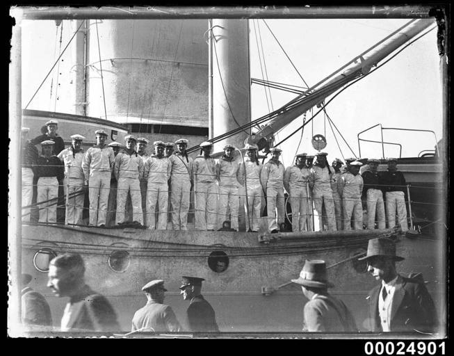| Keywords: koln german cruiser germancruiser german naval visit navalvisit navy naval sydney harbour sydneyharbour samuel j hood collection samueljhoodcollection sydney cove sydneycove circular quay circularquay west circular quay westcircularquay crowds german navy germannavy sailors blackandwhite monochrome photo border text black and white This photo is part of the Australian National Maritime Museum’s Samuel J. Hood Studio collection. Sam Hood (1872-1953) was a Sydney photographer with a passion for ships. His 60-year career spanned the romantic age of sail and two world wars. The photos in the collection were taken mainly in Sydney and Newcastle during the first half of the 20th century.   The ANMM undertakes research and accepts public comments that enhance the information we hold about images in our collection. This record has been updated accordingly.   Photographer: Samuel J. Hood Studio Collection  Object no. 00024901 This photo is part of the Australian National Maritime Museum’s Samuel J. Hood Studio collection. Sam Hood (1872-1953) was a Sydney photographer with a passion for ships. His 60-year career spanned the romantic age of sail and two world wars. The photos in the collection were taken mainly in Sydney and Newcastle during the first half of the 20th century.   The ANMM undertakes research and accepts public comments that enhance the information we hold about images in our collection. This record has been updated accordingly.   Photographer: Samuel J. Hood Studio Collection  Object no. 00024901 |