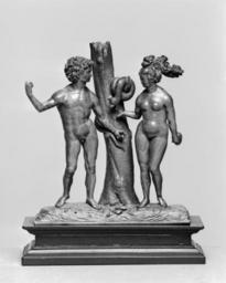 | Keywords: German - The Temptation of Adam and Eve - Walters 61156.jpg The figures of Adam and Eve were carved separately and then set into the base They are derived from Albrecht Dürer's enormously influential and often-copied engraving Dürer himself based his representations of the first man whom the Old Testament describes as made in the image of God on a then-famous antique statue of the Olympian god most known for his beauty Apollo The carver was probably not aware of the classical source for Dürer's Adam; he certainly made the proportions chunkier In general wood carvers were little influenced by the aesthetic norms of classical sculpture between 1520 1540 Renaissance carved boxwood cm 11 9 3 accession number 61 156 20934 Paris Henry Walters Baltimore 1893 mode of acquisition unknown Walters Art Museum Henry Walters Acquired by Henry Walters 1893 Durers Verwandlung in der Skulptur zwischen Renaissance und Barock Staedtische Galerie Liebieghaus Frankfurt am Main 1981-1982 place of origin Flanders Belgium Walters Art Museum license Renaissance sculpture in the Walters Art Museum German art in the Walters Art Museum Temptation of Adam and Eve Media contributed by the Walters Art Museum needs category review |