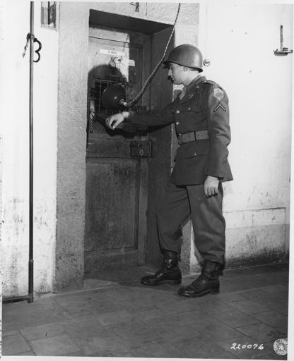 Keywords: German War Crimes Trials. Nuernberg & Dachau - NARA - 292606.jpg Scope and content The door to Rudolf Hess' cell at Nuernberg city jail is guarded constantly primarily to thwart any attempt at suicide The guard here is Pfc Joseph L Pichierre of Towanda Penn with the 18th Regt 1st Inf Div Germany 11/24/45 General notes 292606 Local identifier Department of Defense Department of the Army Fort Leavenworth Kansas 09/18/1947 - NARA's Central Plains Region Kansas City NREA 400 West Pershing Road Kansas City MO 64108 other date circa 1945 1946 Record group Record Group 338 Records of U S Army Operational Tactical and Support Organizations World War II and Thereafter 1917 - 1999 Record group ARC 651 Ft Leavenworth Signal Corps Photograph Collection Equipment File compiled 1939 - 1965 Series ARC 292562 File unit File unit ARC Variant control numbers NAIL Control Number NRE-338-FTL EF -3161 6 Other versions <gallery> File German_War_Crimes_Trials _Nuernberg_ amp _Dachau_-_NARA_-_292606 tif tif File German_War_Crimes_Trials _Nuernberg_ amp _Dachau_-_NARA_-_292606 jpg jpg </gallery> NARA-cooperation PD-USGov US National Archives series Photographs relating to Major Nuremberg Trials compiled 1945 - 1946 Nuremberg Major War Criminals Trial Rudolf Hess 1946 |