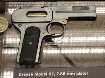 Keywords: Germany Dreyse Model 1907 pistol, 7.65 mm - National World War I Museum - Kansas City, MO - DSC07781.JPG Handgun exhibited in the National World War I Museum at the Liberty Memorial 100 W 26th Street Kansas City Missouri USA Photography was permitted in the museum without restriction Daderot 2011-11-01 15 30 46 Daderot Handguns in the National World War I Museum Dreyse pistols |