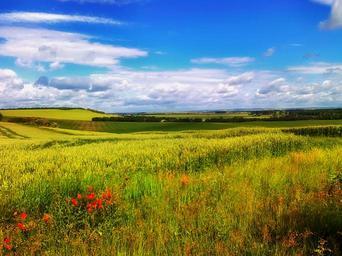 Keywords: germany landscape wildflowers scenic sky clouds nature outside vista country countryside plants grass field meadow summer spring