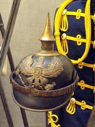 Keywords: Germany Prussian officer's spiked helmet model 1895 - National World War I Museum - Kansas City, MO - DSC07461.JPG Uniform exhibited in the National World War I Museum at the Liberty Memorial 100 W 26th Street Kansas City Missouri USA Photography was permitted in the museum without restriction Daderot 2011-11-01 13 40 41 Daderot Military uniforms in the National World War I Museum Pickelhaube of World War I Dolmans |