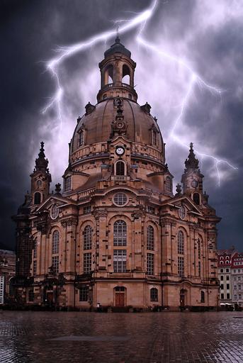 Keywords: germany saxony dresden frauenkirche flash thunder rain