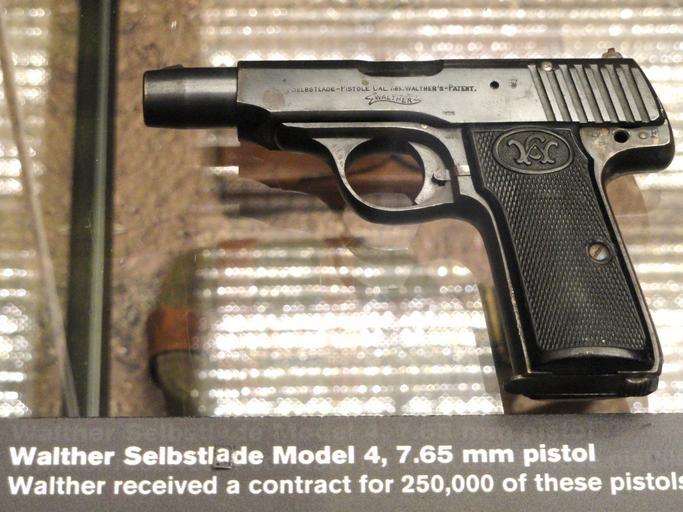 Keywords: Germany Walther Selbstlade Model 4 pistol, 7.65 mm - National World War I Museum - Kansas City, MO - DSC07783.JPG Handgun exhibited in the National World War I Museum at the Liberty Memorial 100 W 26th Street Kansas City Missouri USA Photography was permitted in the museum without restriction Daderot 2011-11-01 15 31 17 Daderot Handguns in the National World War I Museum Walther Model 4 |